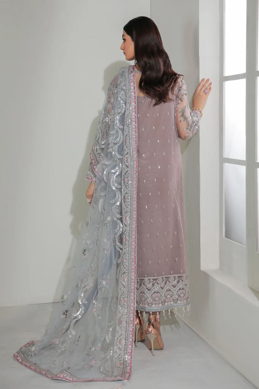 Pure Chiffon Lavender Embroidered Dress : WW176