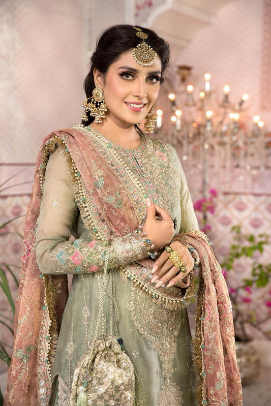 Pure Chiffon Sea Green Embroidered Dress - WW303